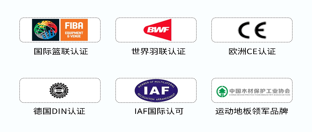 暢森體育運(yùn)動(dòng)木地板通過了國際籃聯(lián)(FIBA)、世界羽聯(lián)(BWF)、歐盟認(rèn)證(CE)、德國標(biāo)準(zhǔn)DIN、歐洲標(biāo)準(zhǔn)EN五大國際標(biāo)準(zhǔn)認(rèn)證。暢森體育案例遍布全球80多個(gè)國家和地區(qū),為全球10000余個(gè)運(yùn)動(dòng)場(chǎng)館提供一站式的整體解決方案,受到國內(nèi)外專業(yè)場(chǎng)館用戶的認(rèn)可與青睞!