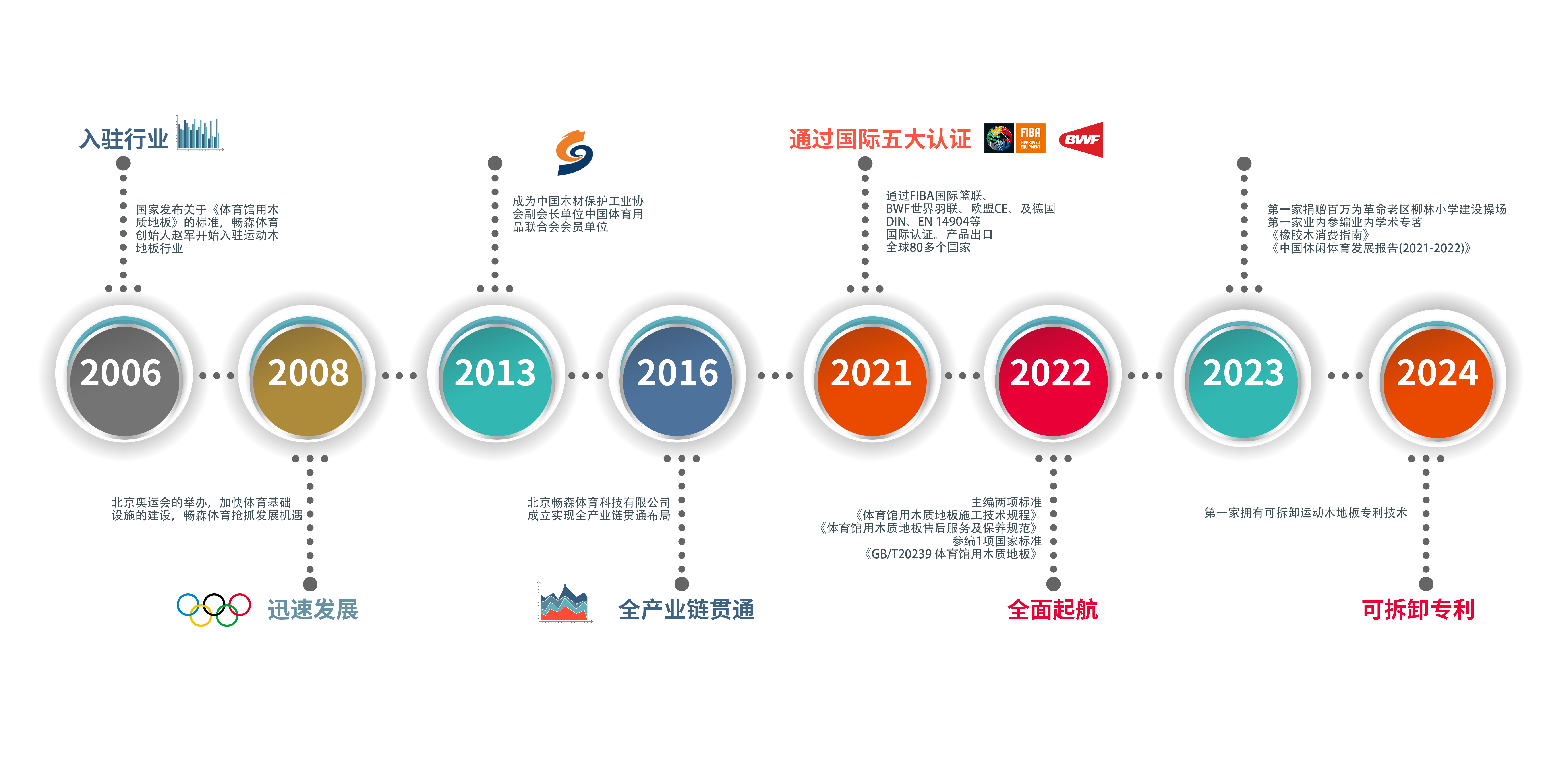 北京暢森體育科技有限公司創(chuàng)始于2006年,是一家集研發(fā)、生產(chǎn)、銷售、安裝、售后服務(wù)為一體的運(yùn)動(dòng)地板綜合型服務(wù)公司。