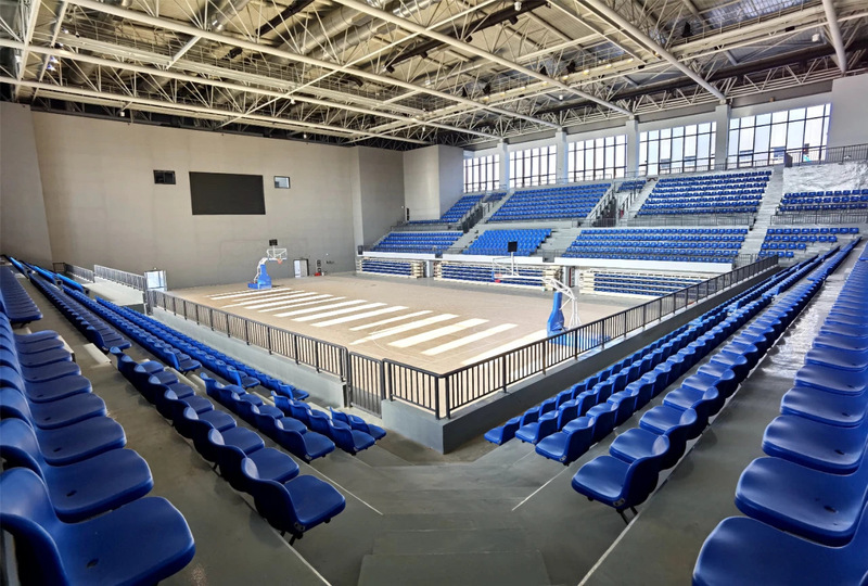 該場(chǎng)館采用了楓樺木雙龍骨的結(jié)構(gòu)系統(tǒng),該結(jié)構(gòu)系統(tǒng)在毛地板與彈性墊之間增加了一層龍骨,運(yùn)動(dòng)木地板標(biāo)高增加,加大了毛地板與地面之間的距離,使運(yùn)動(dòng)木地板底層結(jié)構(gòu)通風(fēng)性及防潮功能更佳。在上下龍骨的交點(diǎn)之間加上一個(gè)彈性墊,既保證系統(tǒng)結(jié)構(gòu)的穩(wěn)定性,避免龍骨直接接觸容易產(chǎn)生響聲,又能保證龍骨間垂直相互運(yùn)動(dòng),提供充足的彈性,提高運(yùn)動(dòng)性能。此結(jié)構(gòu)也經(jīng)常應(yīng)用在籃球、排球等專業(yè)運(yùn)動(dòng)場(chǎng)館。此外籃球館比賽場(chǎng)館設(shè)計(jì)固定座位1900個(gè),活動(dòng)座位860個(gè),在看臺(tái)下設(shè)置配套用房,平時(shí)學(xué)生上課由一層進(jìn)入,比賽期間觀眾由二層平臺(tái)進(jìn)入看臺(tái)。無論是舉辦活動(dòng),還是賽事準(zhǔn)備都能夠有條不紊地進(jìn)行。從2020年起已經(jīng)舉辦過“聚鑫·志道杯” 籃球賽已三屆有余,為師生提供了豐富了的課余文化生活,不僅讓學(xué)生們感受到了籃球運(yùn)動(dòng)的獨(dú)特魅力,更增進(jìn)了交流,也拉近師生之間的距離。