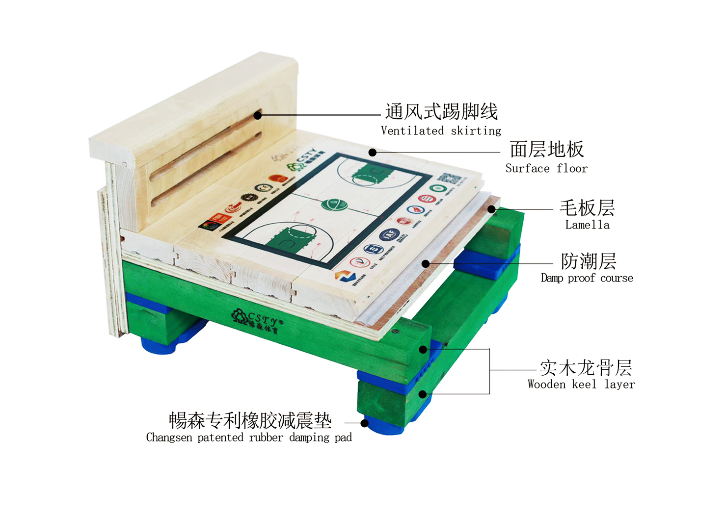 圖:暢森體育運動木地板結(jié)構(gòu)