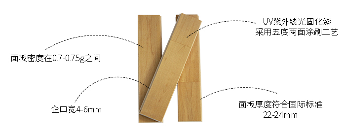 楓木分布廣泛,但屬生長在北緯 38度北美地區(qū)的為有名,匯集了得天獨(dú)厚的地理條件,由于生長期短,冬季長,木質(zhì)呈奶白色,木材硬度適中,木質(zhì)細(xì)密,花紋美麗,光澤良好,而且木紋中常現(xiàn)鳥眼狀或虎背狀花紋,對沖擊力的承受能力強(qiáng),因而經(jīng)久耐磨。因此一個世紀(jì)以來始終是運(yùn)動地板的首選材料。